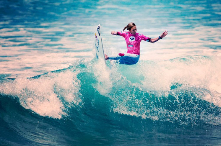 Dès 7h30, les premières surfeuses se sont mises à l’eau dans des vagues propres de 1m à 1,50m. Après une mise en route délicate (battue au 1er tour), la Roxy girl australienne Sally Fitzgibbons s’est imposée avec maestria au 2ème round (dit de repêchage) face à la wildcard française Johanne Defay, établissant le meilleur résultat du jour grâce à son excellent 18,15 pts sur 20. Au tour suivant, Sally s’est montrée tout aussi convaincante en dominant Coco Ho et Lakey Peterson, toutes deux reléguées au 4ème tour. Sally est ainsi d’ores et déjà qualifiée pour les ¼ de finales du Roxy Pro.