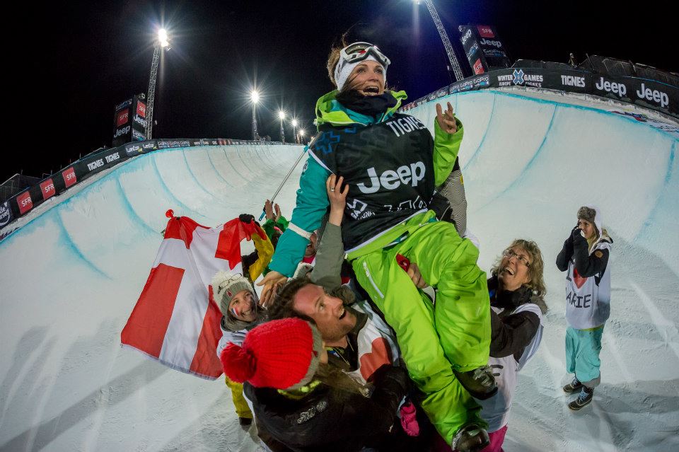 Elle est de retour. Pour de vrai. Marie Martinod, après 7 ans d’absence et seulement quelques mois d’entraînement, revient sur la scène mondiale et remporte le pipe aux X Games de Tignes, devant l’autre française, Anaïs Caradeux. Anaïs faisait clairement partie des favorites, avec Maddie Bowman, Roz Groenwoud, ou même Virginie Faivre, récente Championne du Monde. Mais si Virginie réussit particulièrement bien sur les FIS, elle a moins de chance avec les X Games, et peine hier soir à prendre de l’amplitude. Roz Groenwoud n’est pas elle non plus dans son meilleur jour. En revanche, Anaïs Caradeux et Maddie Bowman se battent bien. Mais dès le premier run, Marie Martinod a mis la barre haute, avec un gros back to back 5 pour débuter, un flair, un gros air et un 7, qui lui vaut 86.33 points.